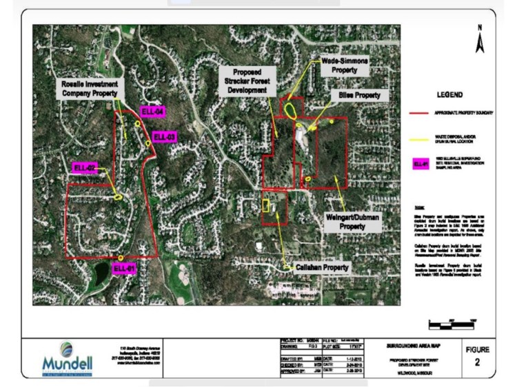 2016, March 14 – Environmental Stewardship Concepts produced this report for the City of Wildwood regarding the Bliss/Strecker Forest site. In the report ESC states they evaluated documents produced after the removal action performed at the Bliss/Strecker Forest site in 2014. The ESC report then later incorrectly references contaminate levels at the Bliss site as being at the Callahan site. ESC also references chemicals identified during a 2011 well installation. This well was installed in an area that was later excavated to bedrock and extensively tested during the 2012 remediation. (MDNR 2012) and (2013 Removal Action Report)